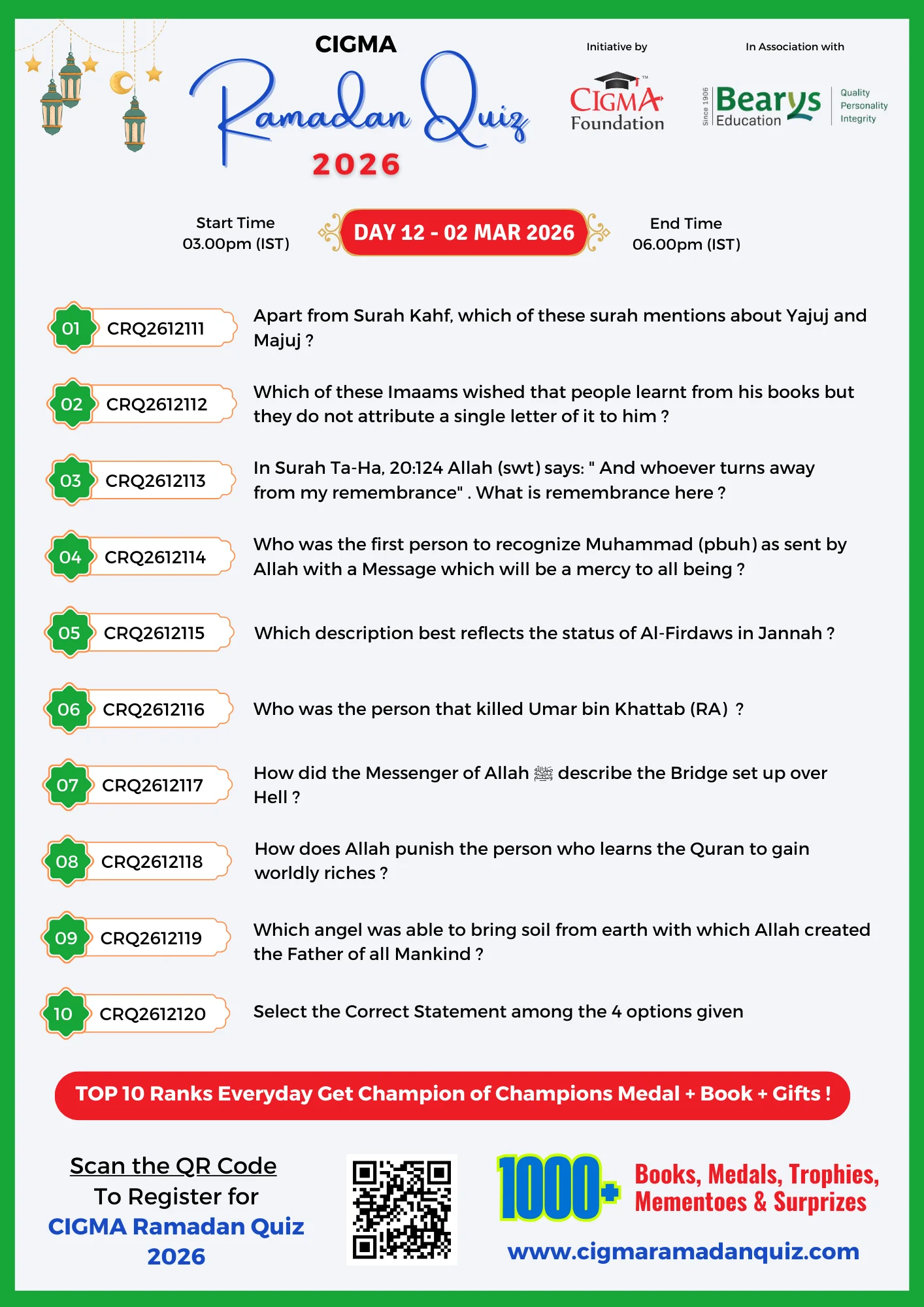 Day 12 Quiz Questions 02 March 2026 | CIGMA Ramadan Quiz 2026